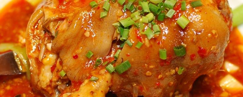 2、酱汁肘子:将猪前肘去尽骨质,刀工成半圆形,用烙铁烙尽肘皮上的余毛,置清水中浸泡10分钟后,刮洗干净,再在肘子肉的一面剞上刀。锅内放冷水,将肘子煮至四成熟取出,移入卤锅内,用中火煮至八成烂,扣入钵内,再取卤锅里的卤汁50克,加精盐搅匀,淋在肘子上,入笼蒸烂即成。
