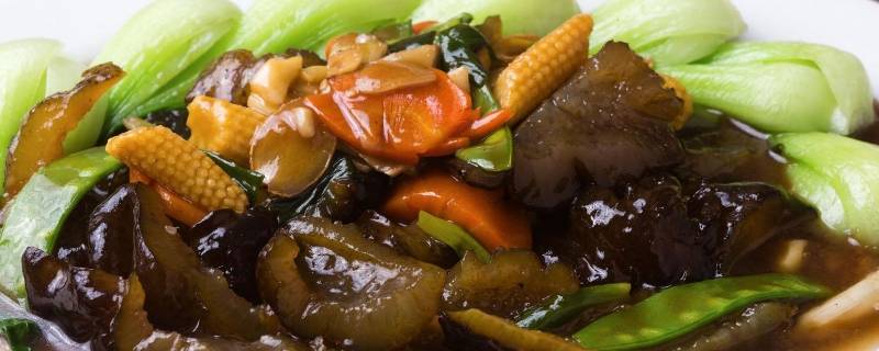 放入海参和大葱翻炒,再加高汤、生抽、料酒、盐和鸡精,焖煮三分钟即可。