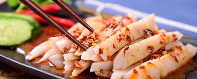 4、凉粉:凉粉通常都是用绿豆淀粉制作而成,主要含有碳水化物、蛋白质等营养成分。其成品晶莹剔透,酸中带辣,爽滑适口。