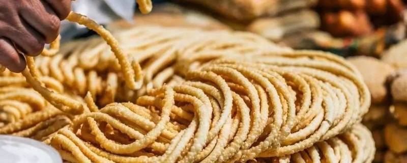 5、馓子:制作馓子要用上好的面粉,加少许食盐用水揉成面坯,然后饧面、切条,再搓成条状,环绕排满盆中,放入油锅,用筷子轻轻翻动,掌握火候煎熬上色,炸至金黄焦脆即可。