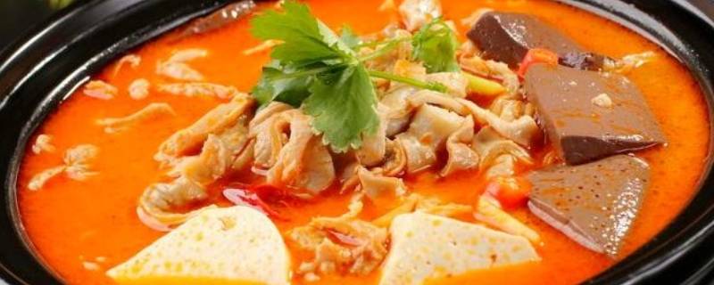 2、罗山大肠汤:罗山大肠汤主材是用淮南猪的大肠,辅以猪血、水豆腐,配各种秘制调料炖制而成,加以荆芥或小蒜苗,其风味独特,肥而不腻,入口柔和,色香味美,营养丰富。
