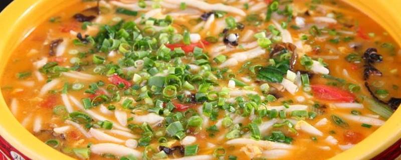 4、锅溜子:锅溜子又名锅岀溜、锅边饭。锅溜子是上世纪六、七十年代粮食困难时期,商南人常吃的一种饭食,因为做这种饭不需要很多面粉,作为酒后的主食,看上去清清亮亮的,而且吃起来香味十足,且能醒酒开胃,商南的锅溜子配料多样,有虾皮、西红柿、青菜、豆腐等,质地软嫩,美味可口,经济实惠,深受人们的欢迎。
