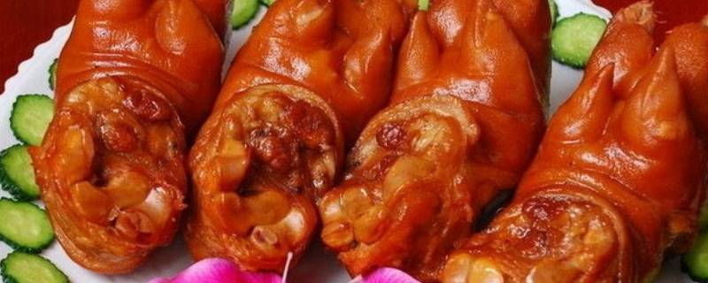 1、邓城猪蹄:邓城猪蹄是一道色香味俱全的传统名肴,属于豫菜系,源于商水县邓城镇。它以清滑爽口,柔韧脱骨,味醇酥嫩,香气浓郁出名,独具风味,吃过后,唇齿留香。