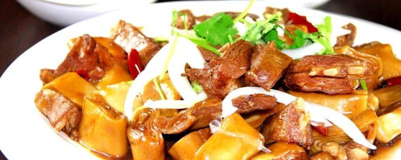 5、永昌酿皮:酿皮是永昌地方风味浓厚的传统小吃。其制作方法是,在麦面中掺和一定量的碱面,用温水调成硬性的面团,几经揉搓,等面团精细光滑,再放到凉水中连续搓洗,洗去淀粉,直到面团成蜂窝状的软胶样时为止。这软胶样的面团煮熟后称作面筋。剩下的面糊待水沉淀后,倒出浮水,将沉淀面糊舀在铺有棉布的蒸笼中蒸熟,取出,吃时须切成长条,缀以面筋数片,浇拌上调料即可。