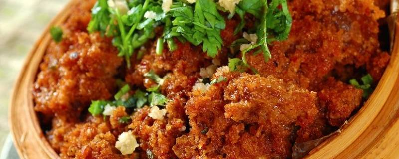 5、香芋扣肉:又称中秋叠肉,是珠三角地区名菜之一,当地人逢年过节必做的一道菜。以猪肋条肉、芋头、萝卜、小麦面粉为制作原料的一道粤菜,其甘香可口,软滑不腻。