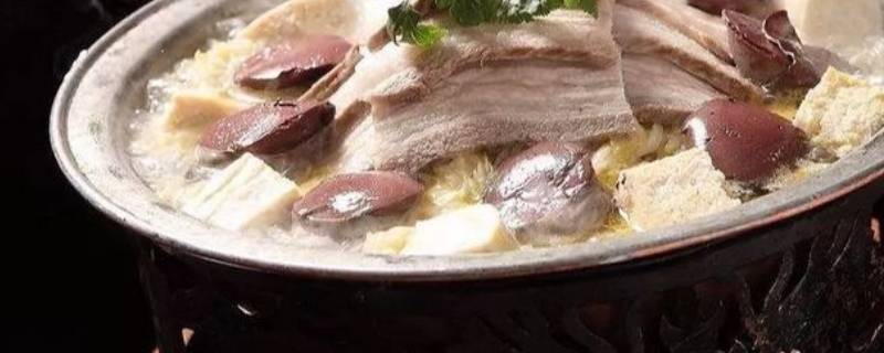 1、汆白肉血肠:血肠用猪或羊的血加调料凝固后灌肠制成。将酸菜和开水汆烫的五花肉加上血肠炖煮,做好的汆白肉血肠酸香入口,五花肉香醇,血肠辣香,酸菜爽口。