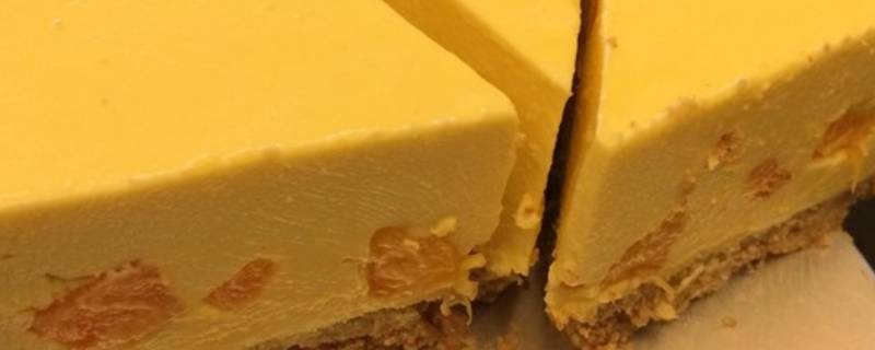 13、将打好的奶酪糊倒进饼模,倒入一半的时候可以适量加入芒果块。