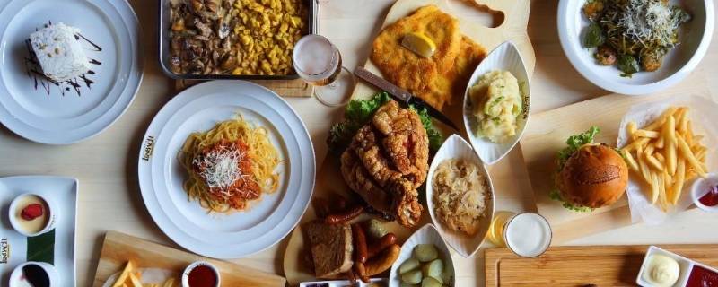 德国猪脚、香肠、德国面包、啤酒、德国酸菜等。