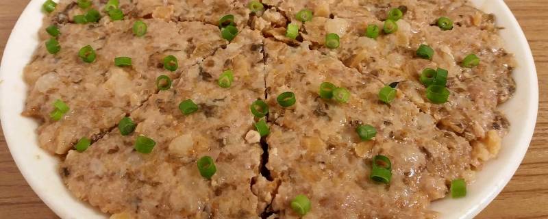 将肉饼、生粉、炒好的咸鱼粒、胡椒粉拌匀;
