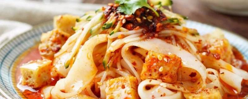 3、凉皮:由于加工时用小石磨加水将米磨制成米粉浆,又叫水磨凉皮。制作时,将磨好的米粉浆平铺于竹蒸笼上蒸制。加入调料,主要是蒜汁、辣椒油,口味酸辣之中透着蒜香。汉中位于陕西秦岭南麓,历来盛产大米,世称“鱼米之乡”,物产富饶,生活习俗类似四川。汉台凉皮同样历史悠久,风味独特、口感较软,其辣椒油没有秦镇凉皮的香气浓烈,但却柔和细腻,别有风味。