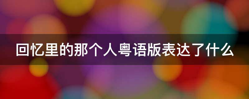 回忆里的那个人粤语版表达了恋爱中男女的深情和不舍。《回忆里的那个人》是李行亮演唱的一首歌曲,由孙小丁作词作曲,电视剧《两生花》的主题曲。于2014年10月24日发行。该歌曲先后获得qq音乐巅峰榜冠军、酷我热歌榜冠军。
