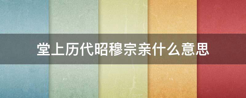 堂上历代昭穆宗亲是指宗庙或宗庙中以往各代神主的排列次序,始祖居中,以下父子(祖、父)递为昭穆,左为昭,右为穆。历代宗亲指自古以来经历多少代的同一家族的亲属,也指从古到今同一姓氏的亲属。宗亲,汉语亲属分类名,指以姓氏为区分的同宗亲属,是以父系血缘为纽带的,以得姓始祖为主根的传承支系关系家族。它是我国古代亲属分类之一,另外是外亲、妻亲。语出《吕氏春秋大乐》:故能以一听政者,乐君臣,和远近,说黔首,合宗亲。