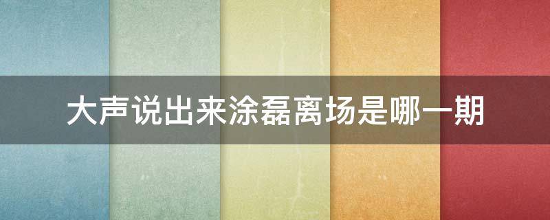 大声说出来涂磊离场是20141110这一期,嘉宾当场怒骂涂磊,涂磊发飙罢录节目愤然离场。《大声说出来》是全国唯一一档原创心理沟通、情感减压节目,由重庆卫视2013年全新改版推出,时长50分钟,由龙勇主持,每周日晚22点播出。节目立足于心理沟通、释惑减压,每期节目邀请几位在爱情、亲情、友情等情感上有着巨大压力和困惑的倾述人来到现场,倾诉他们的压力与困惑,由电视嘉宾、观众和周遭的人一起来帮助他释惑减压,最终他们做出选择,心灵得以释放。