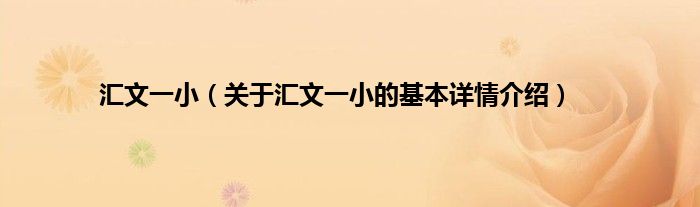 本文关于汇文一小的基本详情介绍就讲解完毕,希望对大家有所帮助。