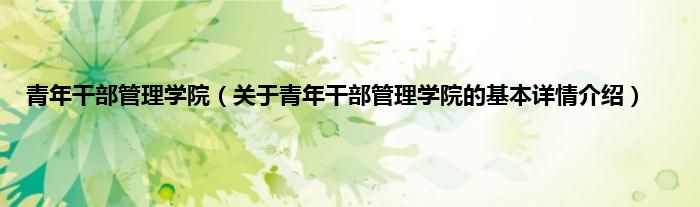 本文关于青年干部管理学院的基本详情介绍就讲解完毕,希望对大家有所帮助。