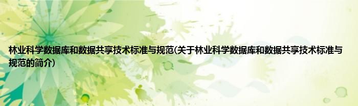 本文关于林业科学数据库和数据共享技术标准与规范的简介就讲解完毕,希望对大家有所帮助。