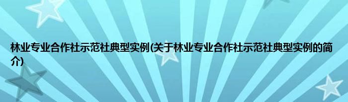 本文关于林业专业合作社示范社典型实例的简介就讲解完毕,希望对大家有所帮助。
