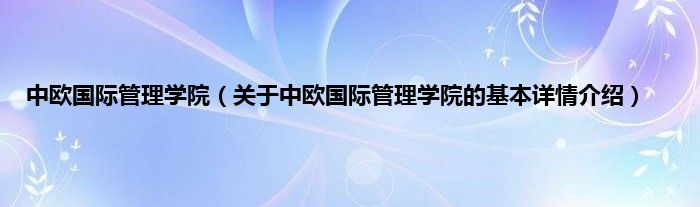 本文关于中欧国际管理学院的基本详情介绍就讲解完毕,希望对大家有所帮助。
