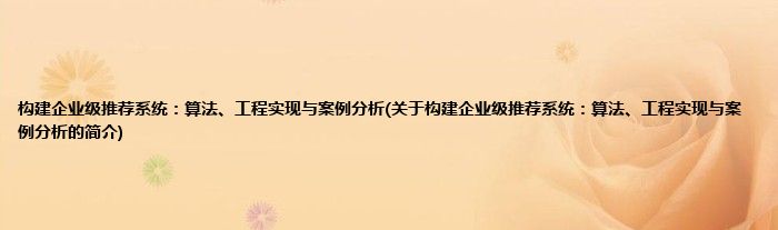 本文关于构建企业级推荐系统:算法、工程实现与案例分析的简介就讲解完毕,希望对大家有所帮助。