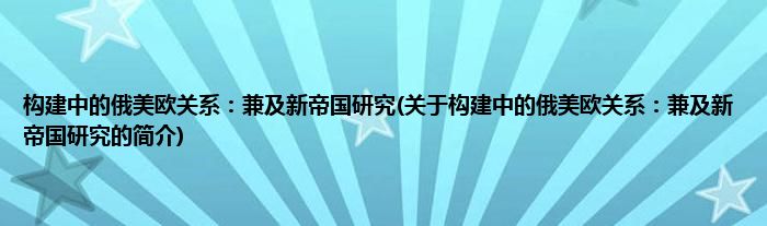 本文关于构建中的俄美欧关系:兼及新帝国研究的简介就讲解完毕,希望对大家有所帮助。