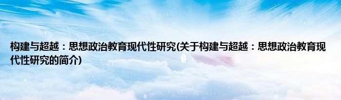 大家好,构建与超越:思想政治教育现代性研究,关于构建与超越:思想政治教育现代性研究的简介很多人还不知道,现在让我们一起来看看吧!