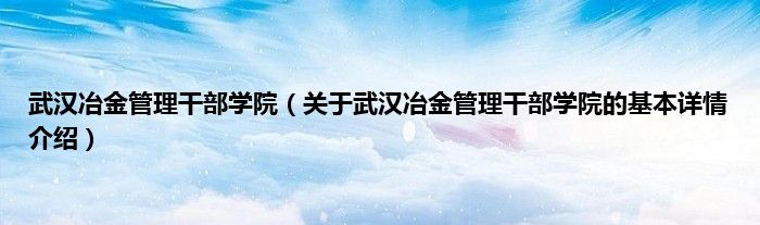 本文关于武汉冶金管理干部学院的基本详情介绍就讲解完毕,希望对大家有所帮助。