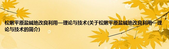 松嫩平原盐碱地改良利用—理论与技术(关于松嫩平原盐碱地改良利用—理论与技术的简介)