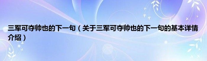 本文关于三军可夺帅也的下一句的基本详情介绍就讲解完毕,希望对大家有所帮助。