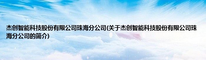 本文关于杰创智能科技股份有限公司珠海分公司的简介就讲解完毕,希望对大家有所帮助。