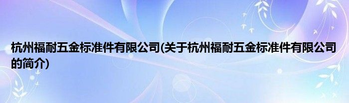 本文关于杭州福耐五金标准件有限公司的简介就讲解完毕,希望对大家有所帮助。