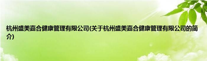 本文关于杭州盛美嘉合健康管理有限公司的简介就讲解完毕,希望对大家有所帮助。