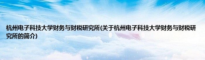 大家好,杭州电子科技大学财务与财税研究所,关于杭州电子科技大学财务与财税研究所的简介很多人还不知道,现在让我们一起来看看吧!