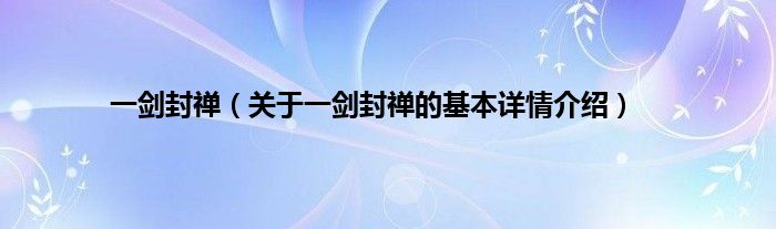 本文关于一剑封禅的基本详情介绍就讲解完毕,希望对大家有所帮助。