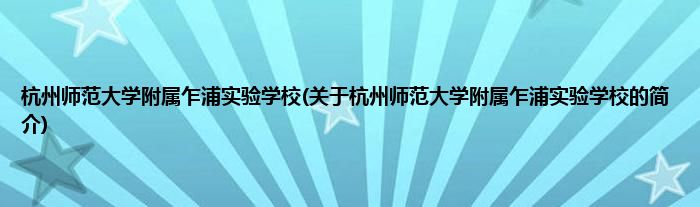 本文关于杭州师范大学附属乍浦实验学校的简介就讲解完毕,希望对大家有所帮助。