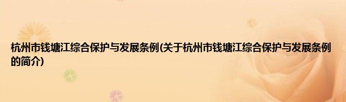 本文关于杭州市钱塘江综合保护与发展条例的简介就讲解完毕,希望对大家有所帮助。