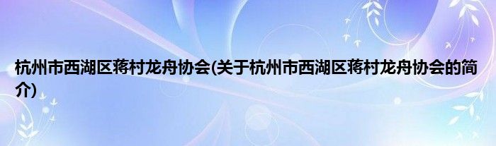 本文关于杭州市西湖区蒋村龙舟协会的简介就讲解完毕,希望对大家有所帮助。