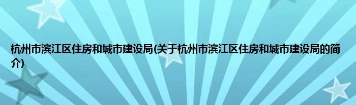 本文关于杭州市滨江区住房和城市建设局的简介就讲解完毕,希望对大家有所帮助。