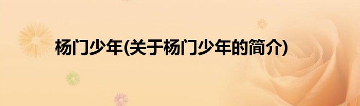 本文关于杨门少年的简介就讲解完毕,希望对大家有所帮助。