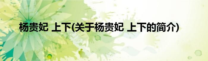 本文关于杨贵妃 上下的简介就讲解完毕,希望对大家有所帮助。