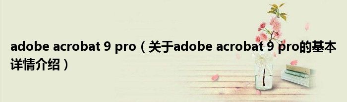 本文关于adobe acrobat 9 pro的基本详情介绍就讲解完毕,希望对大家有所帮助。