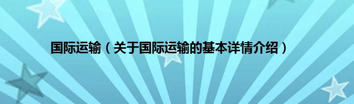 本文关于国际运输的基本详情介绍就讲解完毕,希望对大家有所帮助。