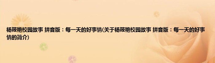 本文关于杨筱艳校园故事 拼音版:每一天的好事情的简介就讲解完毕,希望对大家有所帮助。