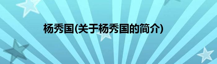 本文关于杨秀国的简介就讲解完毕,希望对大家有所帮助。