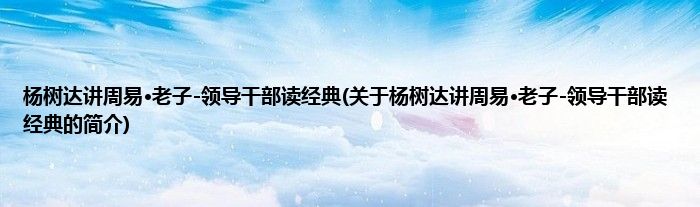 本文关于杨树达讲周易·老子-领导干部读经典的简介就讲解完毕,希望对大家有所帮助。
