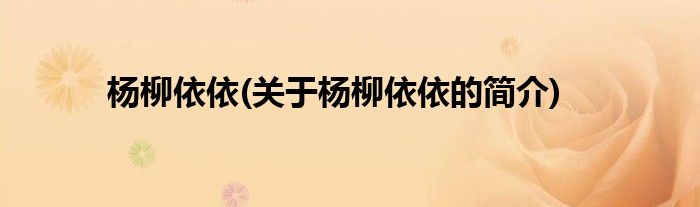 本文关于杨柳依依的简介就讲解完毕,希望对大家有所帮助。