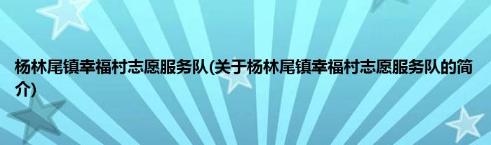 本文关于杨林尾镇幸福村志愿服务队的简介就讲解完毕,希望对大家有所帮助。