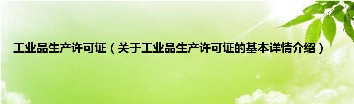 本文关于工业品生产许可证的基本详情介绍就讲解完毕,希望对大家有所帮助。