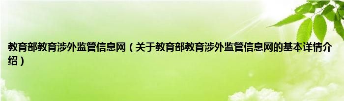 本文关于教育部教育涉外监管信息网的基本详情介绍就讲解完毕,希望对大家有所帮助。
