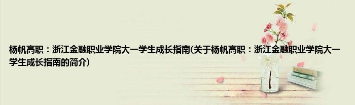本文关于杨帆高职:浙江金融职业学院大一学生成长指南的简介就讲解完毕,希望对大家有所帮助。