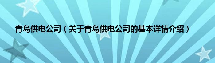 本文关于青岛供电公司的基本详情介绍就讲解完毕,希望对大家有所帮助。